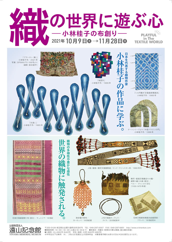 2013~2019年に当館に寄贈された織物研究家・小林桂子氏の世界の染織コレクションと、氏の織物作品を合わせてご覧いただく展覧会です。